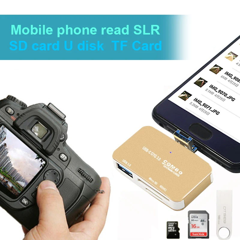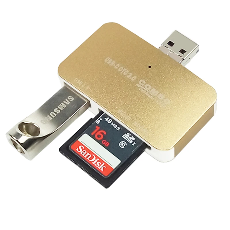 Aliexpress has USB 3.0 Hub Card Reader Leadzoe 2 in 1 USB 3.0 Micro USB,SD Card/TF Card Multi function Card Reader OTG Adapter For Phone PC for just $ shipped.