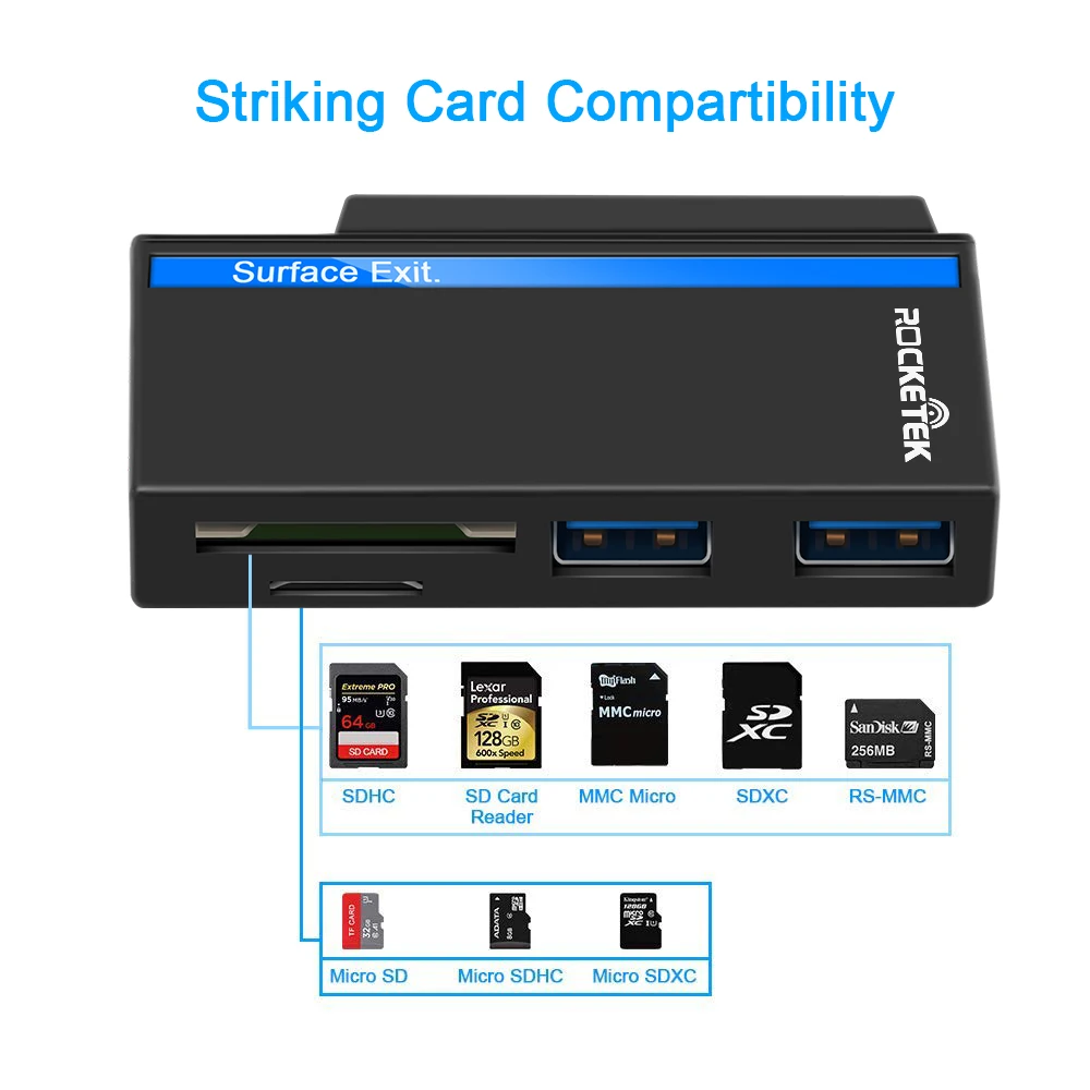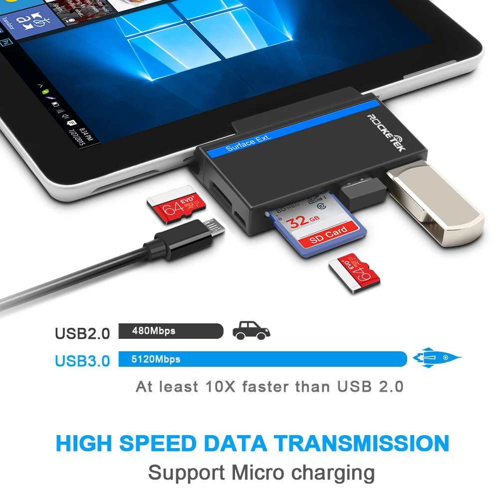 Rocketek usb type-C 3.0 multi 5 in 1 memory card reader adapter for SD/TF micro SD Microfoft Surface go Hub computer accessories
